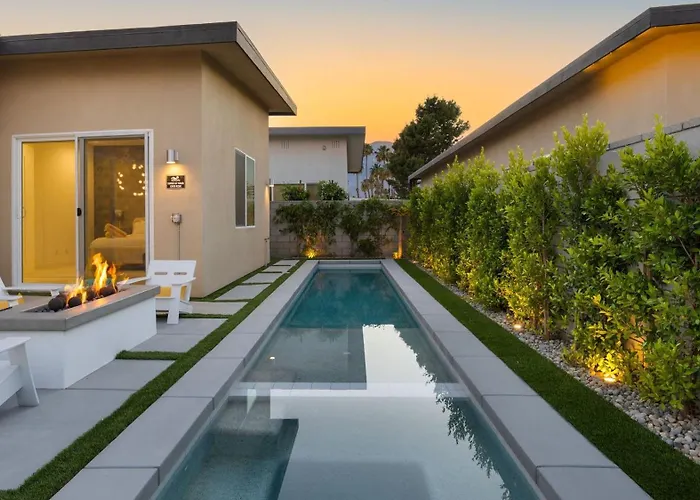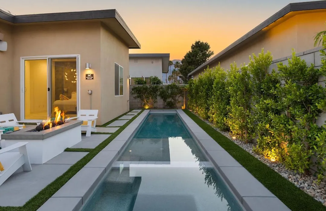Willa Lumen At Tahquitz: New Build With Pool Fire Pit Designer Interiors Palm Springs leży 2 km od od tętniących życiem miejsc handlowych, takich jak Centrum handlowe Canyon Plaza, a jego Goście mogą korzystać z bezpłatnego prywatnego parkingu. Dom wakacyjny oferuje zewnętrzny basen, a także jacuzzi, aby zrelaksować się po męczącym dniu.